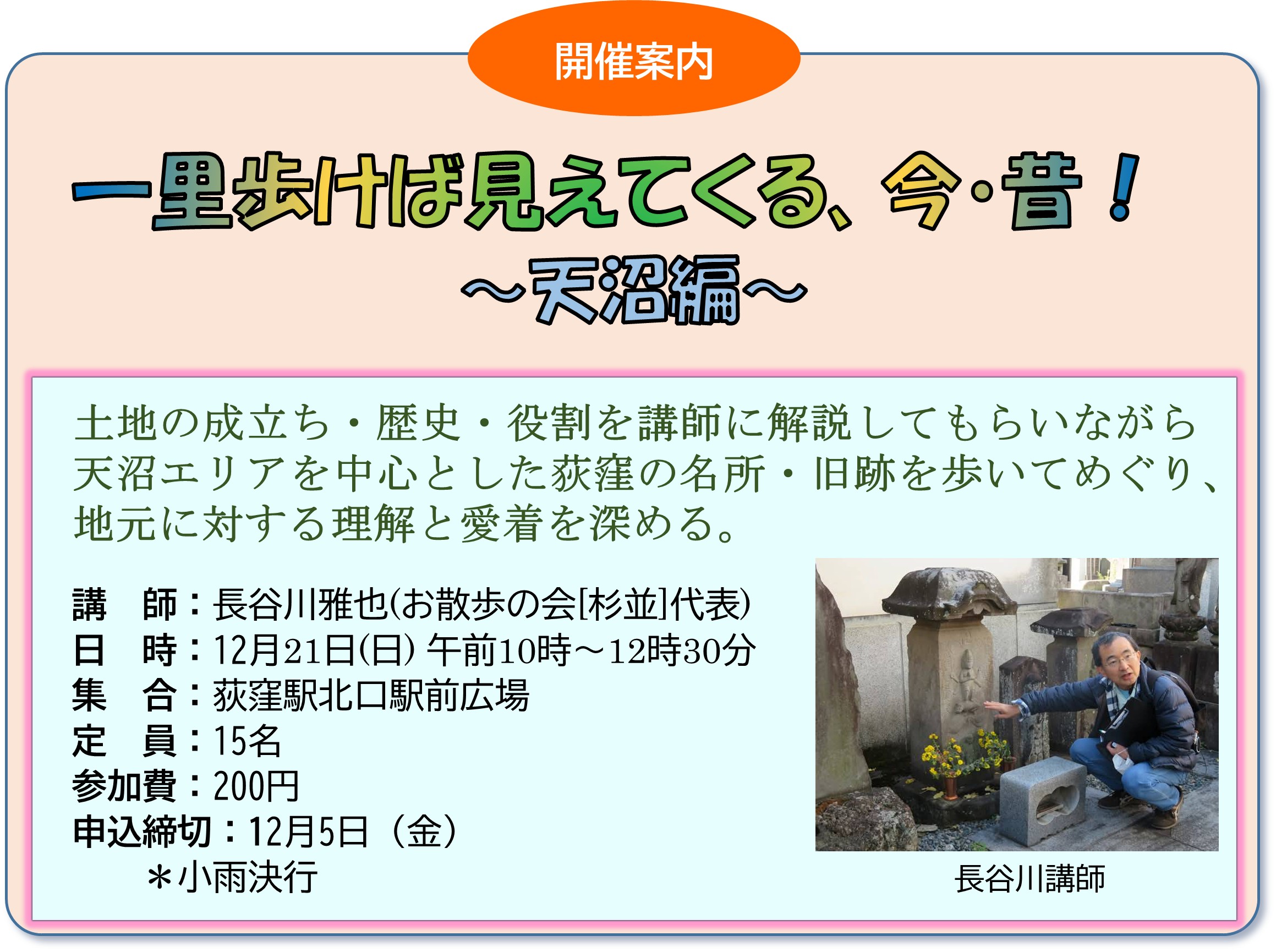 一里歩けば見えてくる、今・昔! ~天沼編~ 12月21日(日)開催