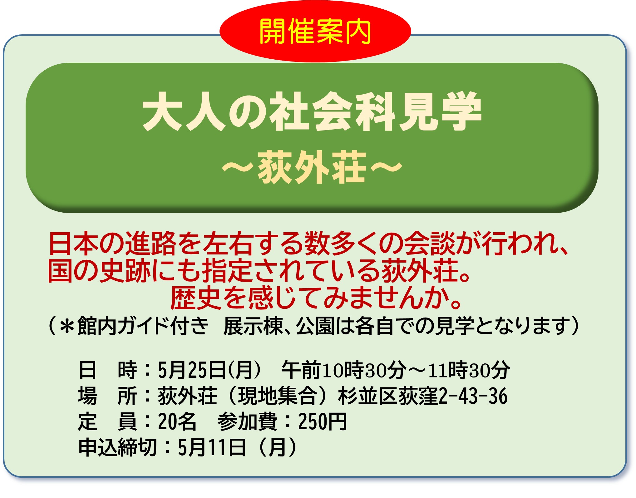 大人の社会科見学~荻外荘~ 5月25日(月)開催