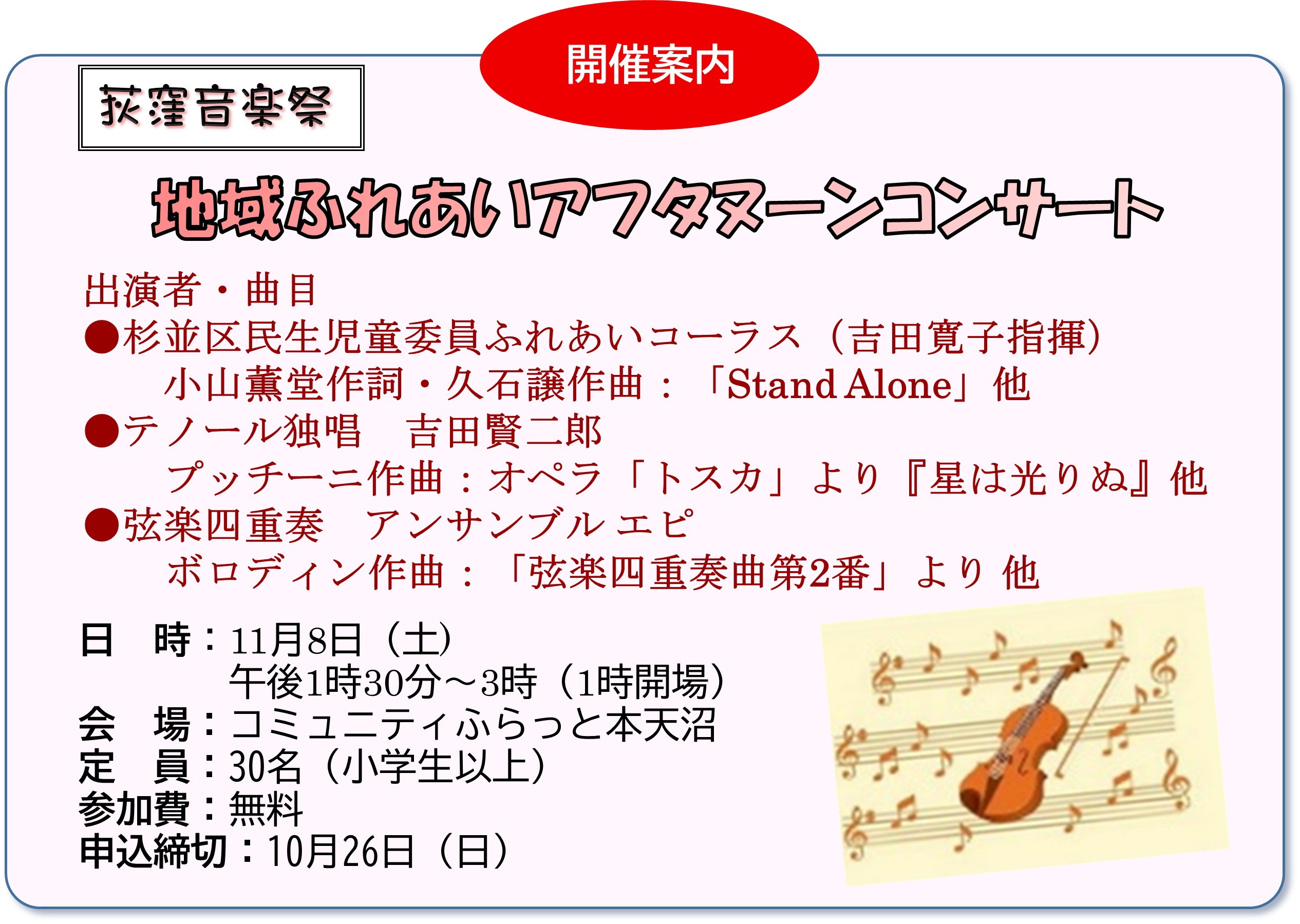 荻窪音楽祭 地域ふれあいアフタヌーンコンサート 11月8日(土)開催